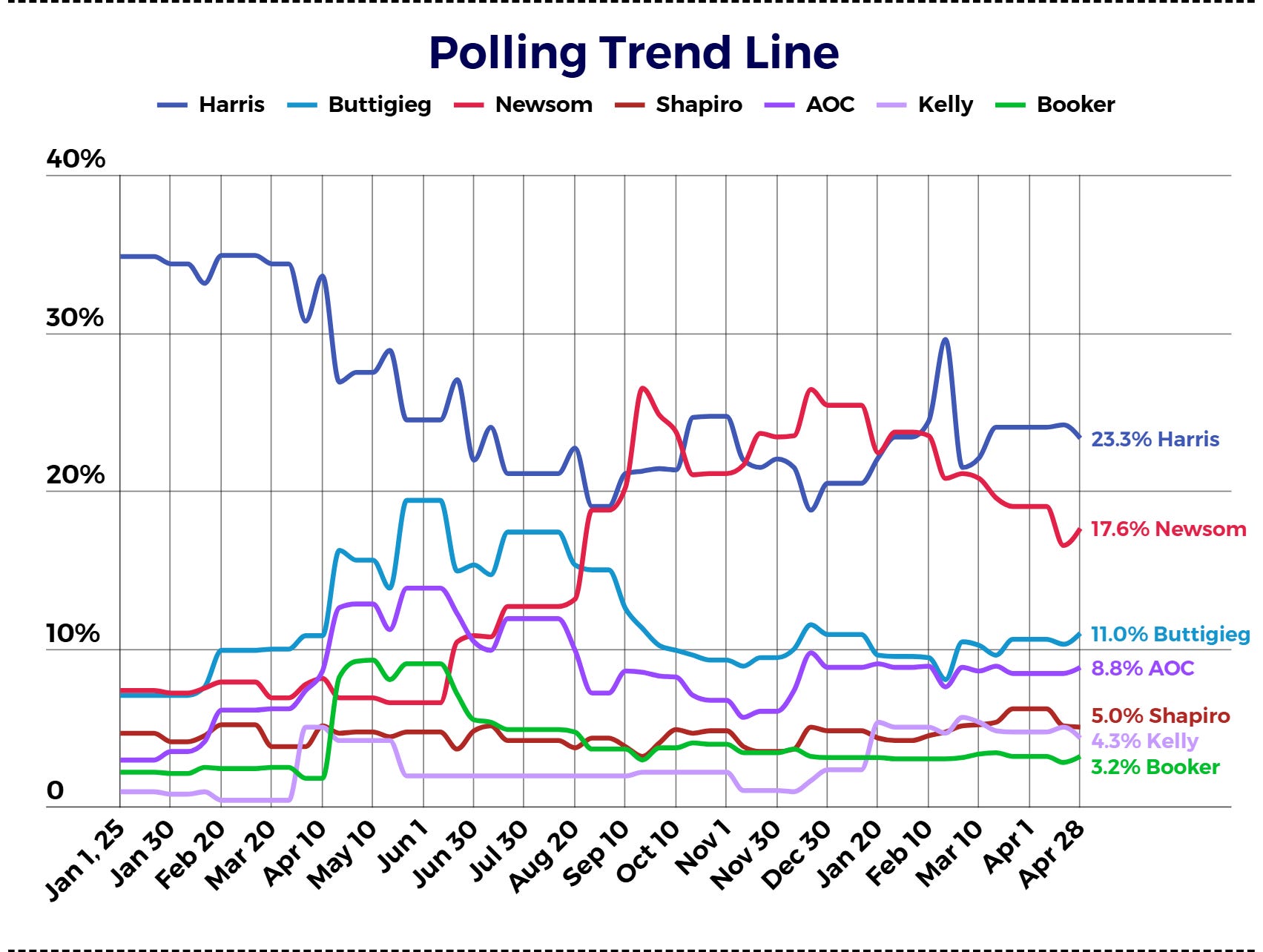 To state the obvious: this isn’t good. While presidential history might be full of candidates who came from humble beginnings before storming to the White House, these cases aren’t exactly common, especially when the candidate in question was already well known heading into the race. As stated before, AOC is already one of the most famous people in the world; it’s utterly impossible for her issue to just be one of name recognition. It’s also not one of mistaken identity, either. Democratic voters absolutely adore AOC, giving her higher net favorability ratings than even Kamala Harris and Gavin Newsom in some polls. They are just very reluctant to say that they think that she should be the party’s nominee. Such a poisonously mixed verdict, if truly cemented, could render her bid completely dead on arrival: a mile away from real viability but with no room to improve.